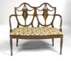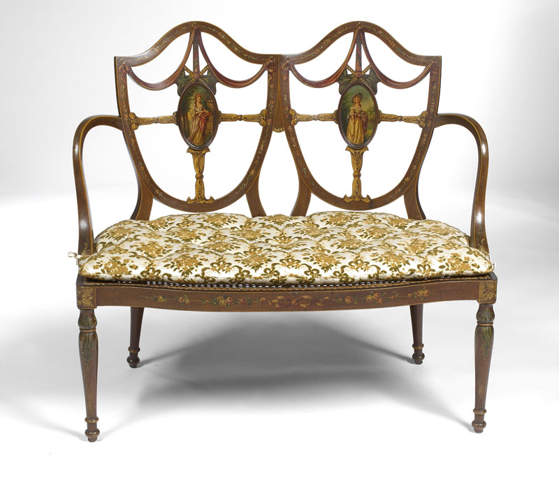 An Edwardian period painted mahogany double chair back settee In the Sheraton style