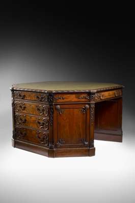 A fine late 19th/early 20th century George III style octagonal mahogany partners desk By H. Samuel, London