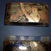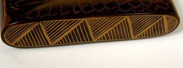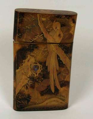 decorated in gilt lacquer with an exotic bird on a branch to each side