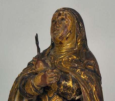 A late 17th/early 18th century Spanish carved and gilded figure of the Virgin