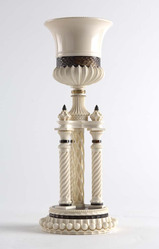 A fine late 19th century Indo-Portuguese turned ivory, tortoise shell and rosewood chalice