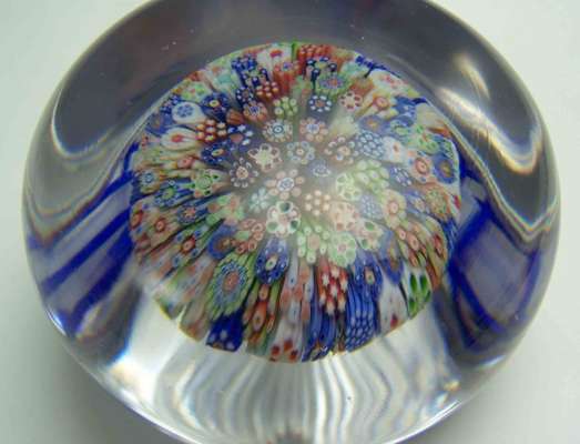 the decoration of mushroom form with close packed millefiore and a rope twist border