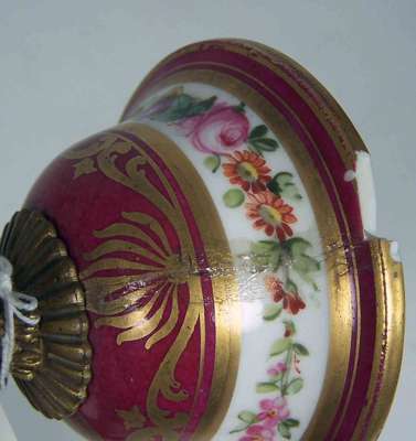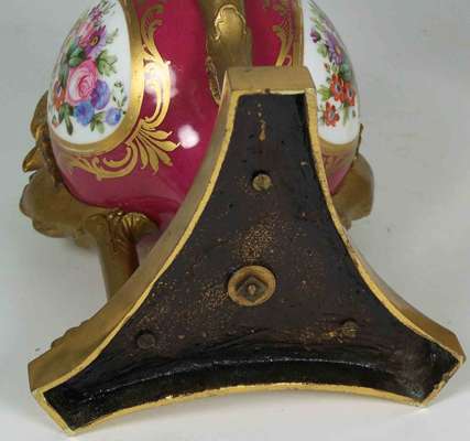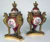 Pair of Sevres style porcelain and gilt bronze cassolettes