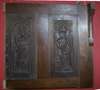 depicting allegorical subjects; together with four 19th century carved oak panels of saints, a relief carved bookshelf, 16th/17th century, two oak reliefs and a further French panel carved with a flowering vase (14)
