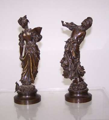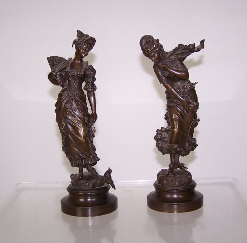 bronze, brown patinas, signed K. Sterrer, raised on ogee circular bases, a pair (2)