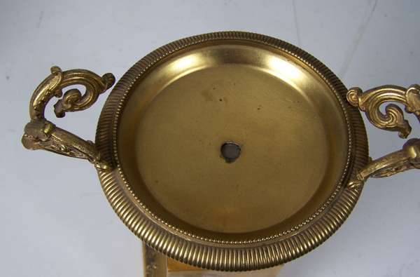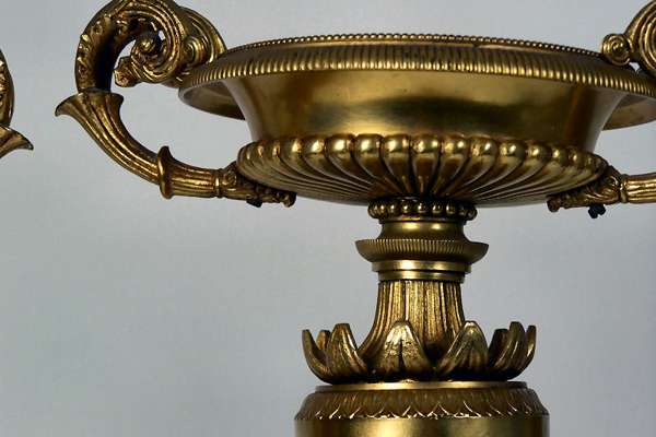 A pair of French Empire style gilt bronze and siena marble tazzae
