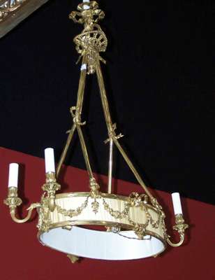 the elliptical wreath applied and swagged frieze with pleated silk lining, suspended on stylised drapery mounts ending in a ribbon tied basket cresting with mounting hooks