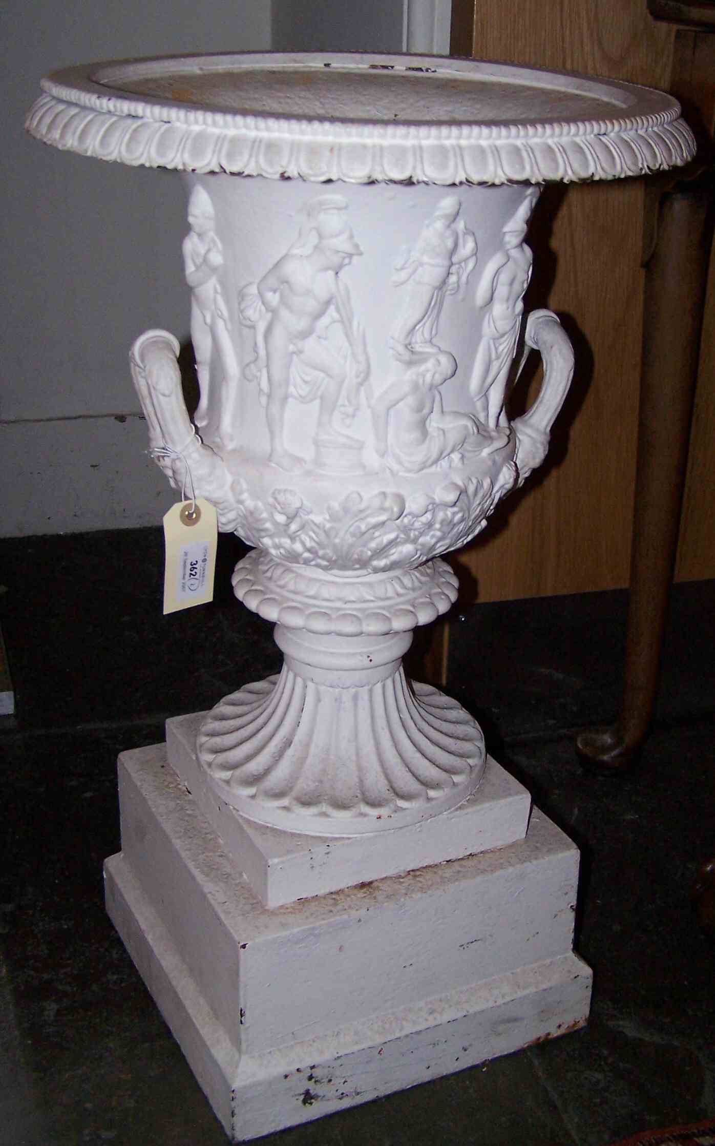 A pair of 19th century cast iron 'Medici' urns