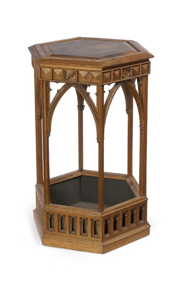 An early 19th century Gothic Revival carved hexagonal jardiniere Possibly to a design by A W N Pugin