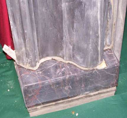 The marble for this fire impressive surrounds was possibly locally sourced, being grey with white and dark grey veins and whorls.