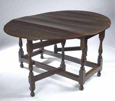 the oval top of planked construction above a plain frieze and baluster turned and block legs, with single gate action, united by perimeter stretchers