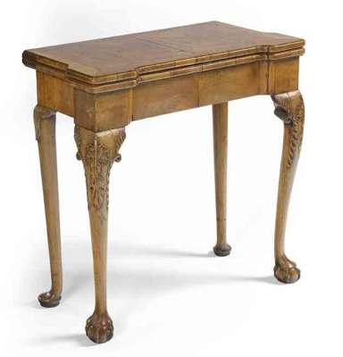 A walnut and crossbanded foldover games table, circa1910 in the George II manner