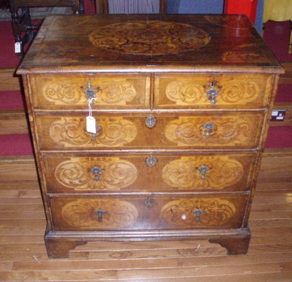 An early 18th century walnut, crossbanded and 'seaweed' marquetry chest of drawers