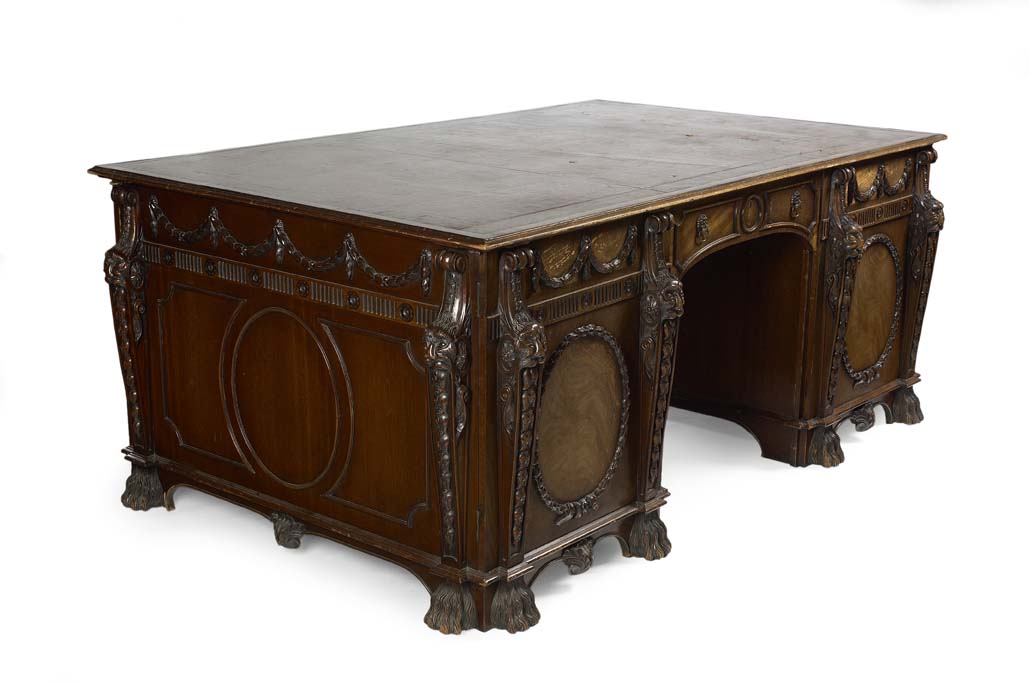A large mahogany partners' library table In the manner of Thomas Chippendale