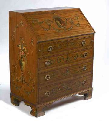 A Sheraton Revival satinwood and tulipwood crossbanded bureau