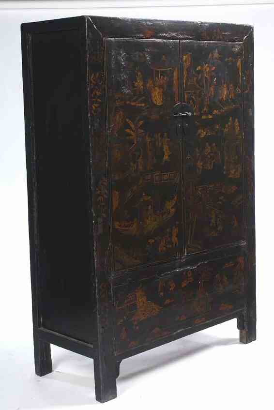 A Chinese elm and black lacquer side cabinet in the late 18th century style