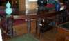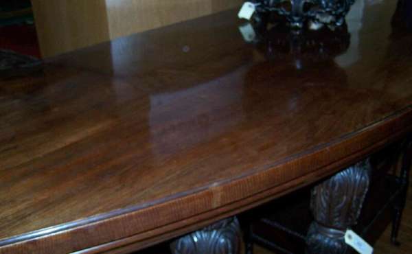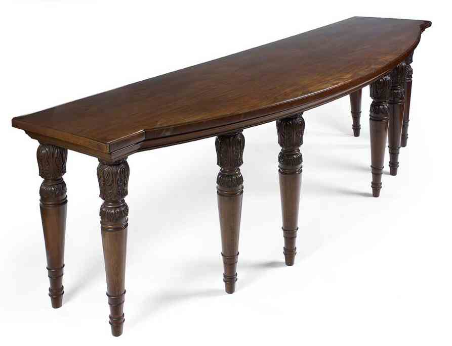 of impressive proportions, the top of break-bowfront outline with moulded frieze on eight turned tapering legs with bold acanthus leaf carved capitals, on ring-turned feet