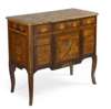 A late 18th century Transitional French provincial rosewood, tulipwood and marquetry commode