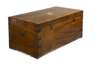 of impressive proportions, the hinged top with central plaque above double recessed handles and lock escutcheons flanked by brass drop carrying handles