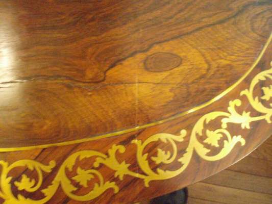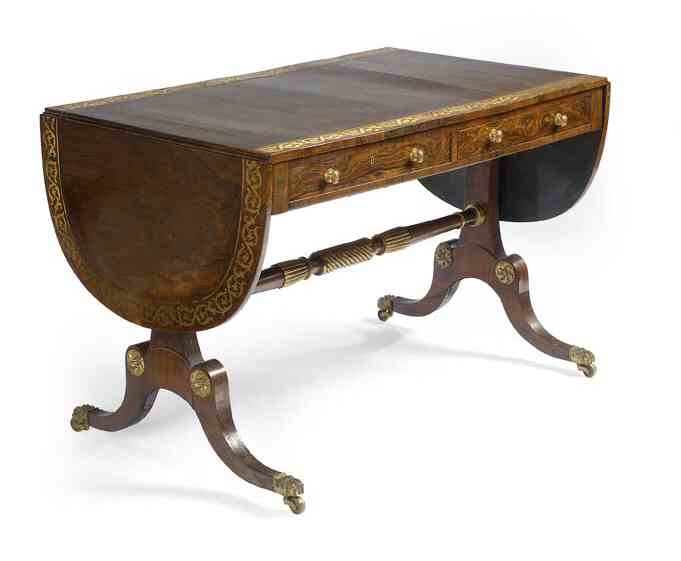 A Regency period rosewood and cut brass inlaid sofa table