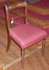 the bar backs above overstuffed seats covered in red patterned fabric, raised on ring turned legs, three side chairs stamped 'WB' on the back seat rail (6)