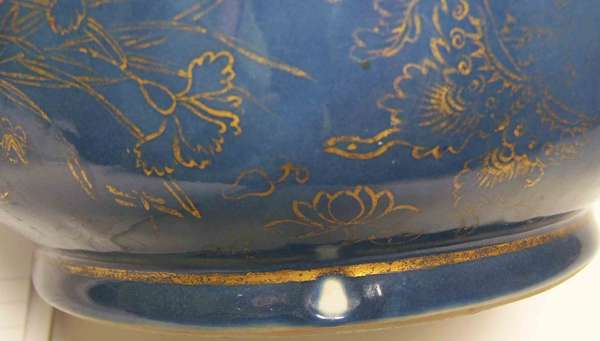 with a moulded serpent coiled around the neck, decorated with gilt flowers (gilt rubbed)