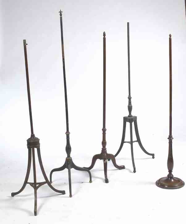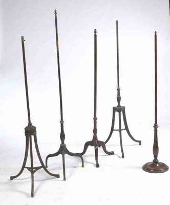 variously on cabriole and splayed tripod bases, lacking banners (5)