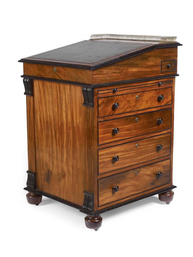 A Regency period Andaman padouk and ebonised davenport