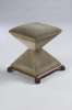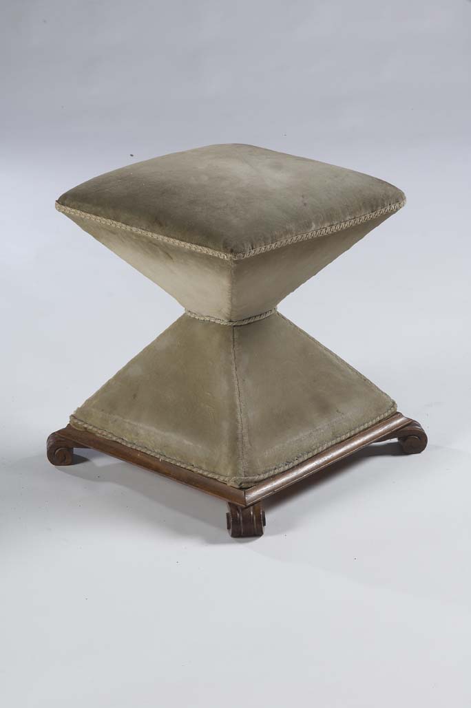 of waisted square section design with velvet upholstery, on scroll feet