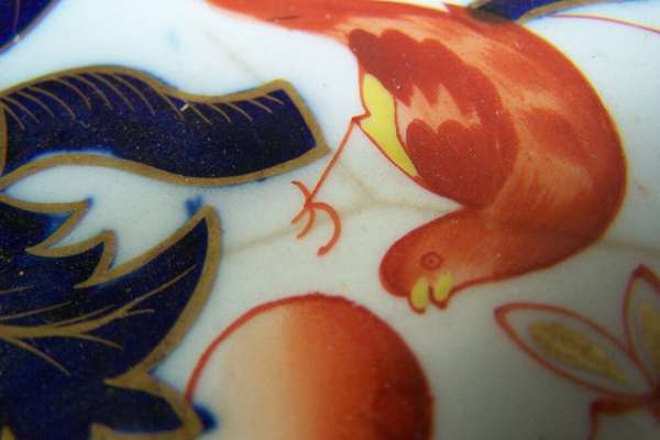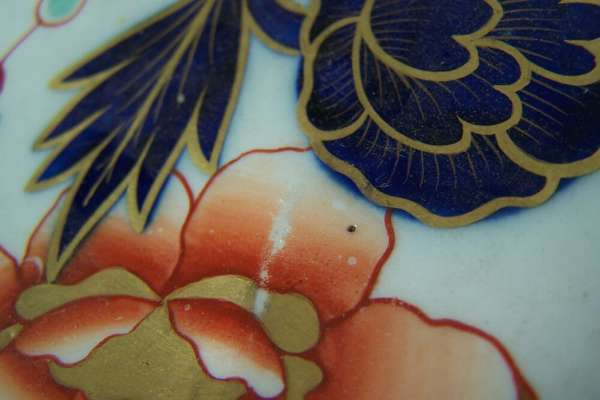 painted with birds and bold flowers and foliage, comprising: four canted square dishes, 22cm wide; four shaped oval dishes, 27.5cm wide; and ten plates (18)