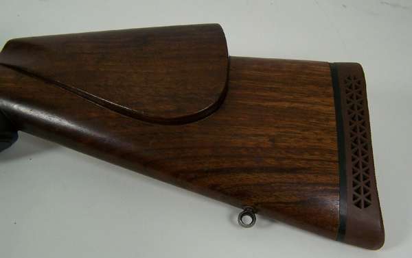 the well figured walnut pistol grip stock with raised comb with rubber recoil pad, serial number 5686