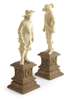 each modelled as a standing cavalier, raised on later carved oak pedestal base (2)