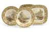 each with gilt vine and grape border, the well painted with cattle in a Highland landscape, signed J Stinton, comprising: two square dishes; two circular dishes; and twelve plates, puce printed mark and date code for 1915 (16)