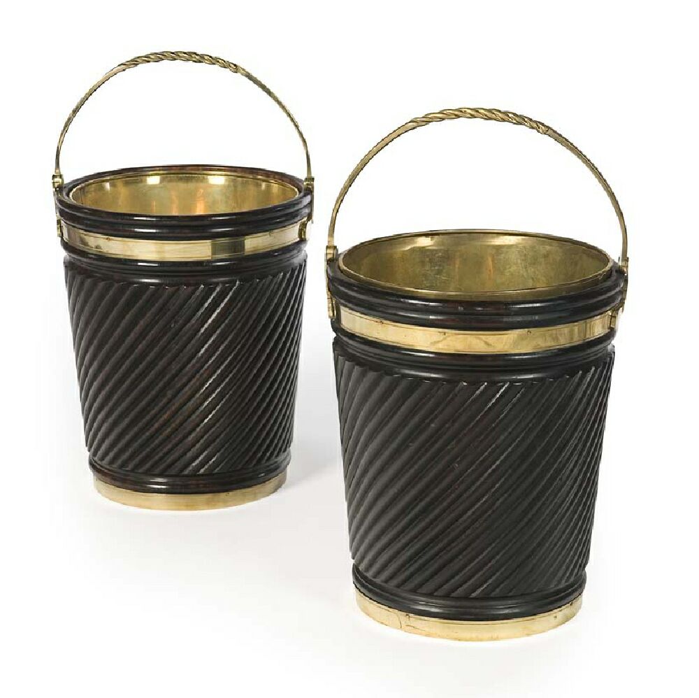 A pair of mahogany and brass bound peat buckets In the 18th century Irish style