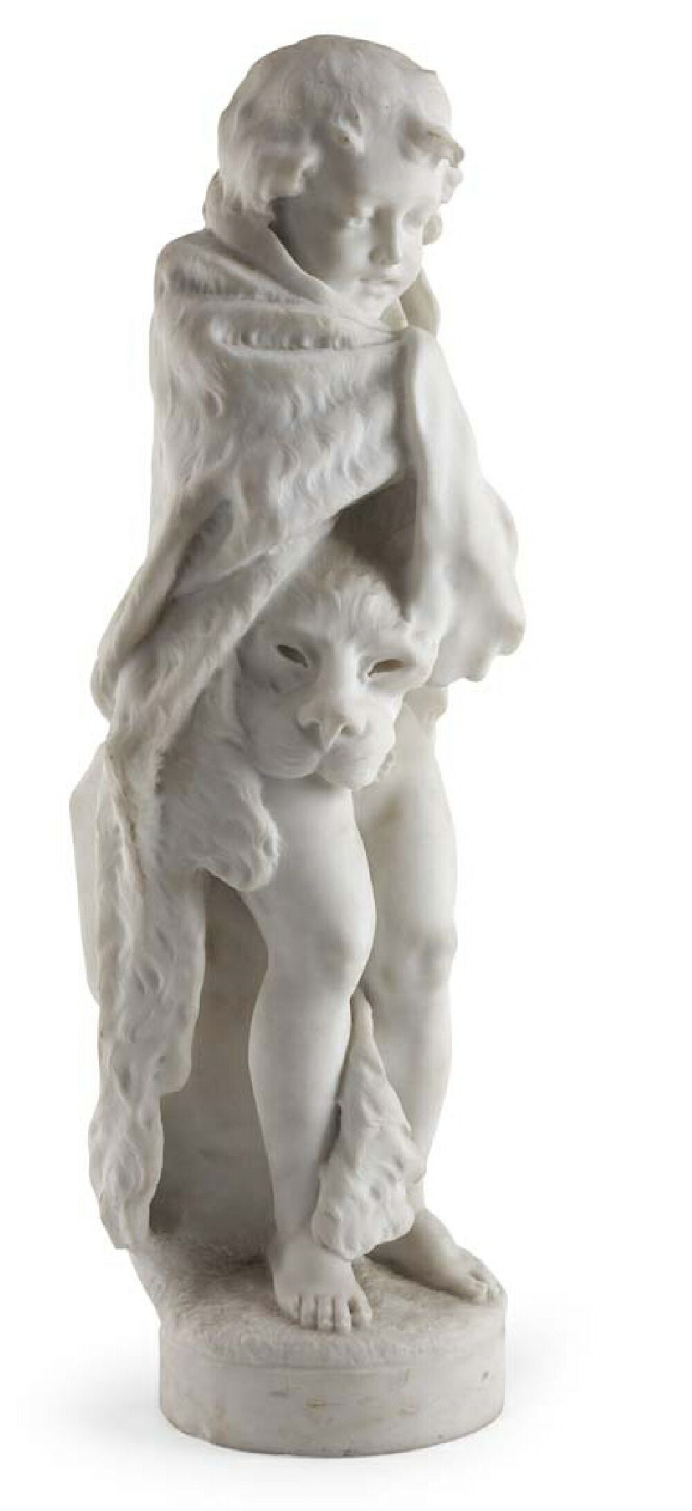 YOUNG CHILD DRAPED WITH A LIONS PELT, EMBLEMATIC OF WINTER
