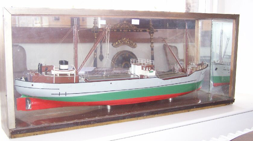 A painted wooden ship builder's half model