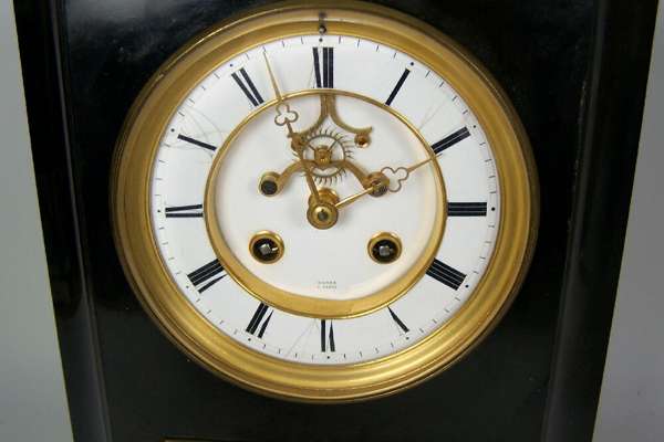 A French slate calendar clock By Moser, Paris