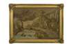 apparently depicting William Beckford's estate in Jamaica, with two figures walking in a wooded gorge with waterfall, within a rococo carved gilt-gesso frame