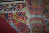 the red field with central column of seven polychrome hooked lozenge medallions, within ivory stylised vine border