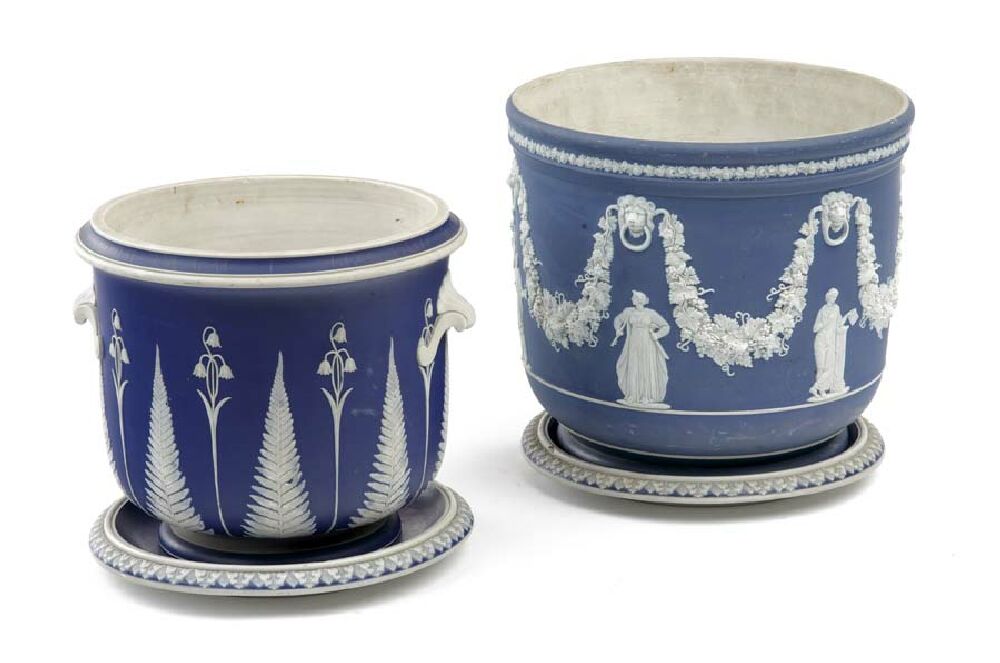 A 19th century Wedgwood blue jasperware jardinière and matched stand