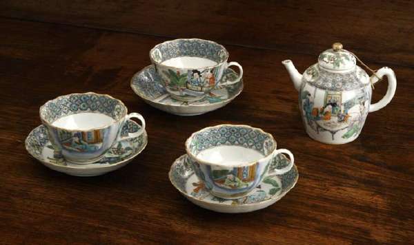 A set of three 19th century Chinese famille verte tea cups and saucers