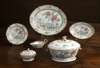with spearhead border and flower sprigs, the well decorated with bold peonies and chrysanthemums with blue rockwork, comprising: two large oval tureens, two sauce boats, a sauce tureen and cover, seventeen graduated ashets, and twenty-six dinner plates (40)