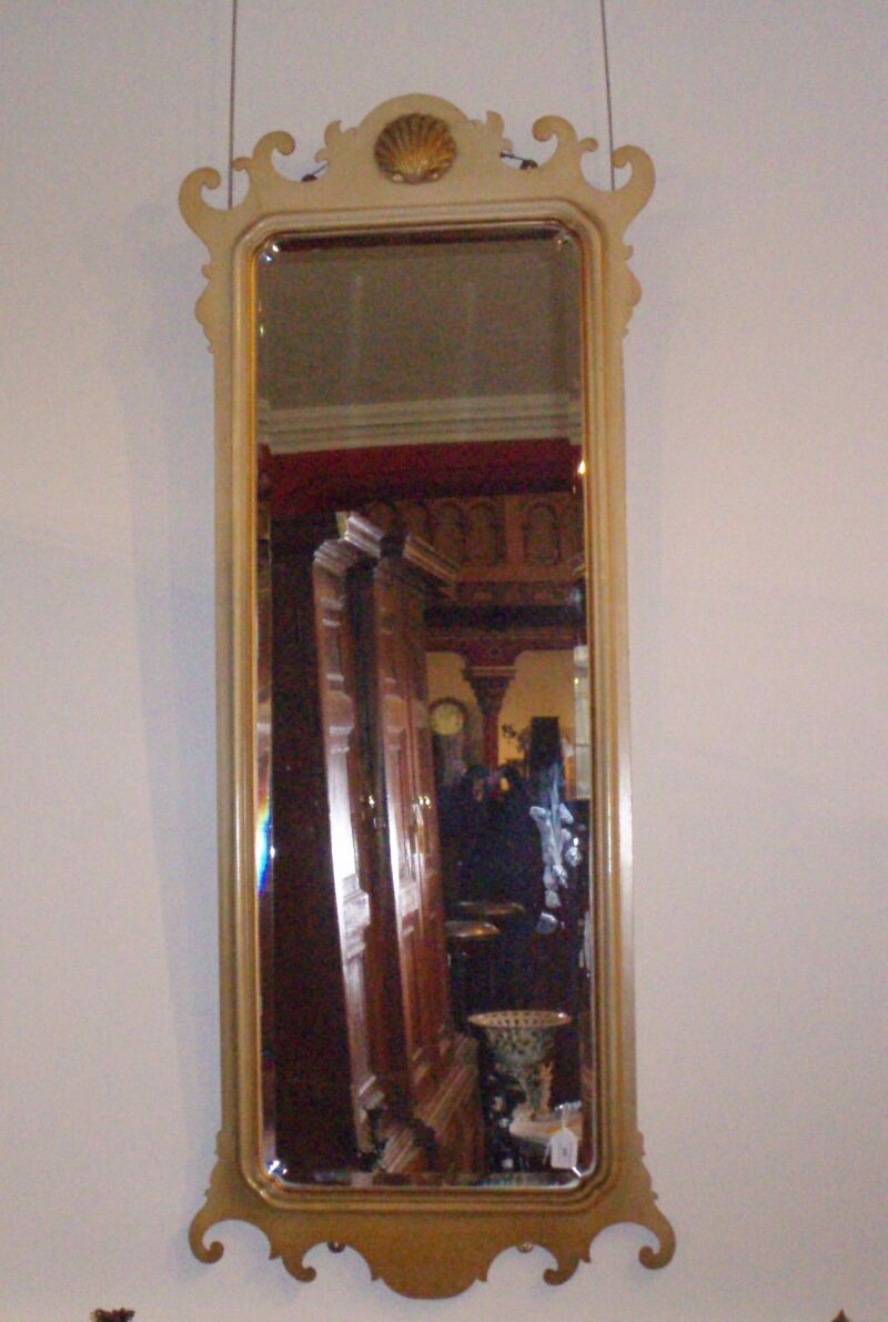 A pair of early 20th century cream painted fretwork wall mirrors