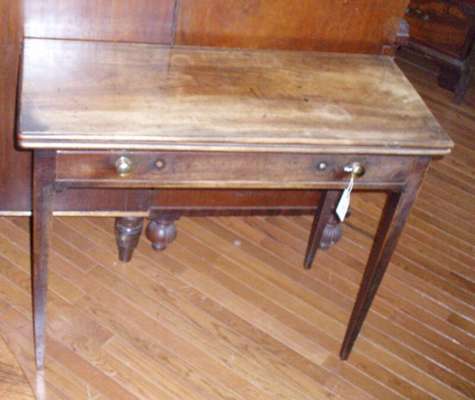 the rectangular of top with a rounded edge above a long drawer, on square tapering legs (faded)