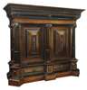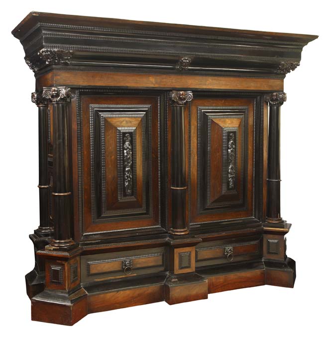 A large mid 17th century Flemish rosewood, ebony and ebonised two door cabinet