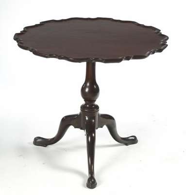 A mid 18th century mahogany 'pie crust' tilt top table