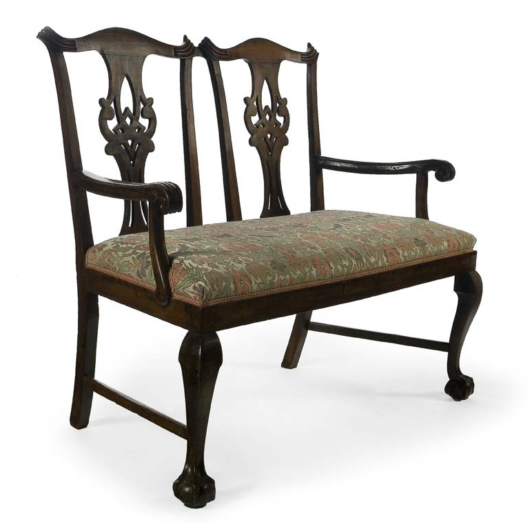 A walnut framed George III style double chair back settee In the Chippendale manner