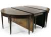 the rounded rectangular top with two demi-lune ends and a drop leaf centre section above a plain frieze with beaded edge, on square tapering legs ending in spade feet