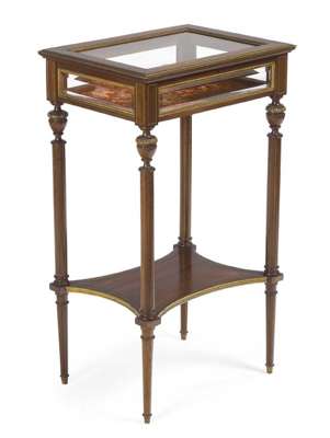A French mahogany, brass strung and gilt metal mounted bijouterie table In the Louis XVI manner