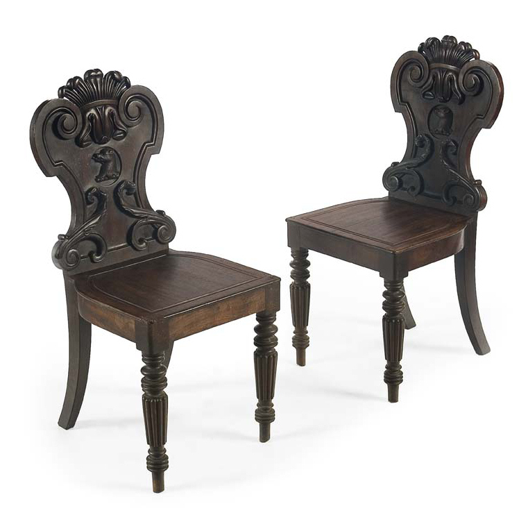 A pair of Regency period mahogany hall chairs